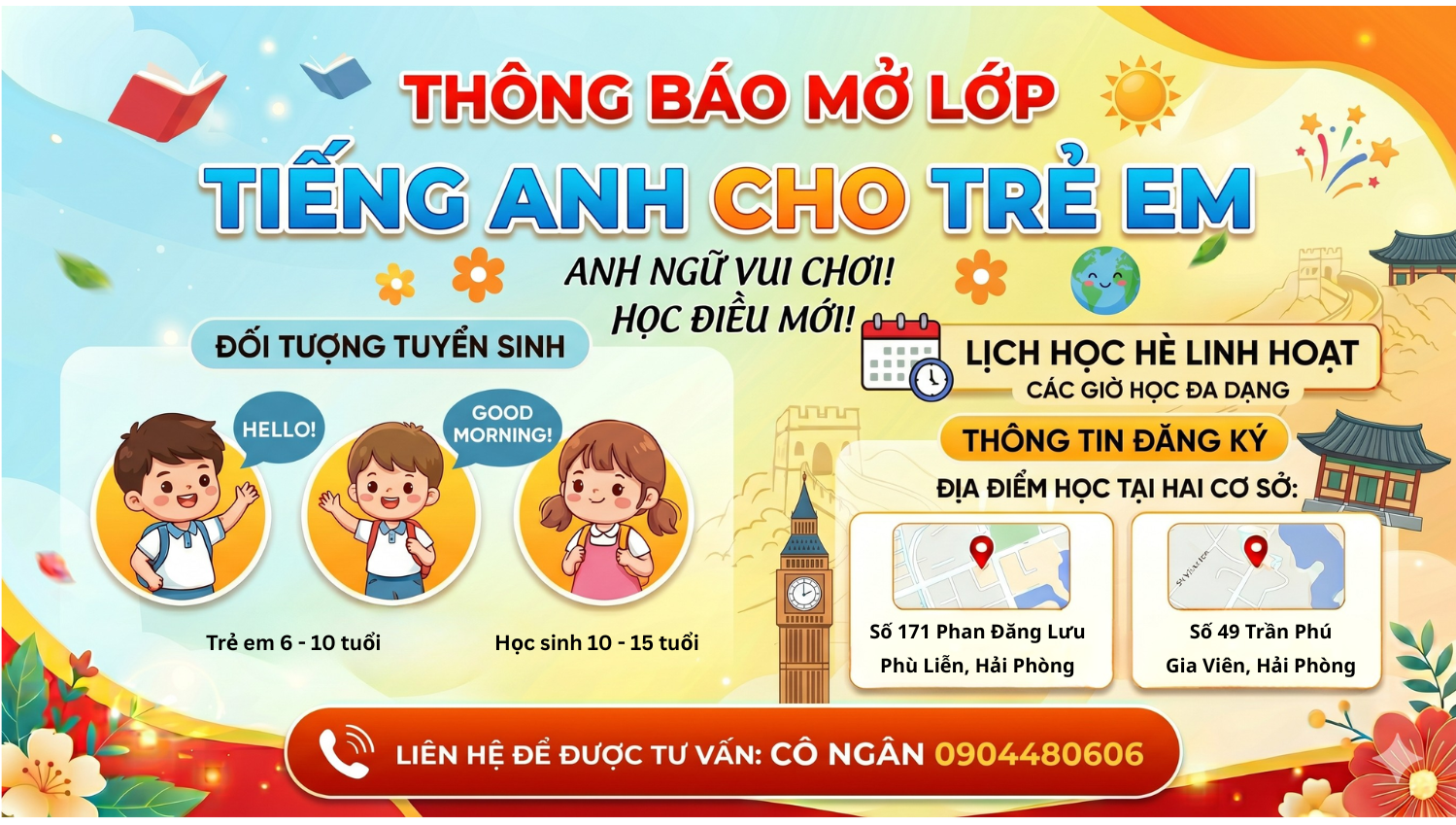 Tuyển sinh lớp tiếng Anh cho học sinh, trẻ em