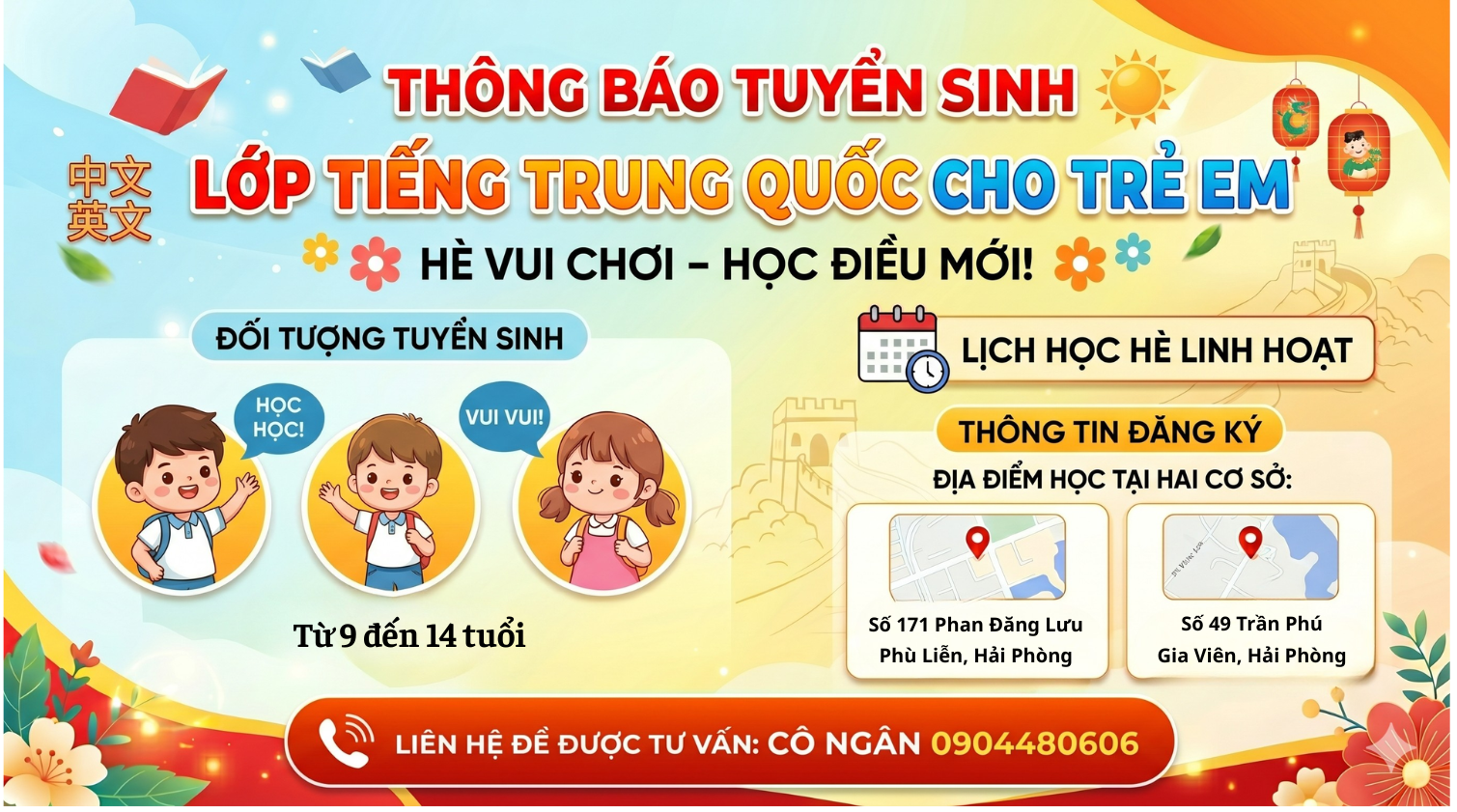 Tuyển sinh lớp tiếng Trung Quốc cho học sinh