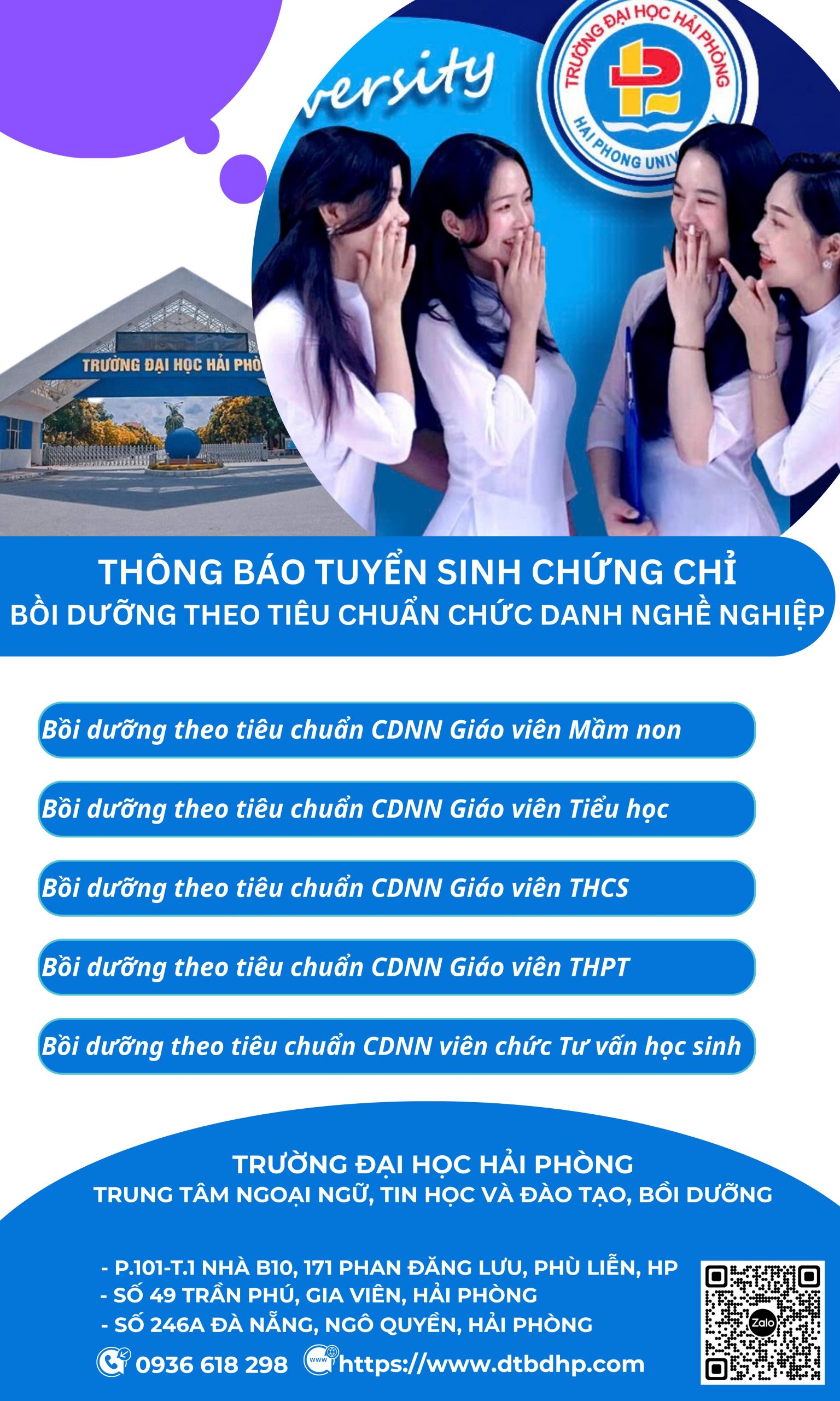 – Bồi dưỡng theo tiêu chuẩn chức danh nghề nghiệp viên chức Tư vấn học sinh: xem thông báo tại đây
